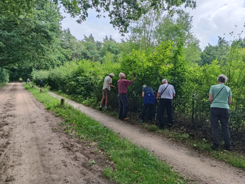 “We zijn hier eigenlijk om naar insecten te kijken,” vertelt Geert. “Gewoon inventariseren, soorten vastleggen. Maar we steken ook de handen uit de mouwen: hagen knippen, mulchen, wieden. Alles wat bij ecologisch beheer komt kijken.”