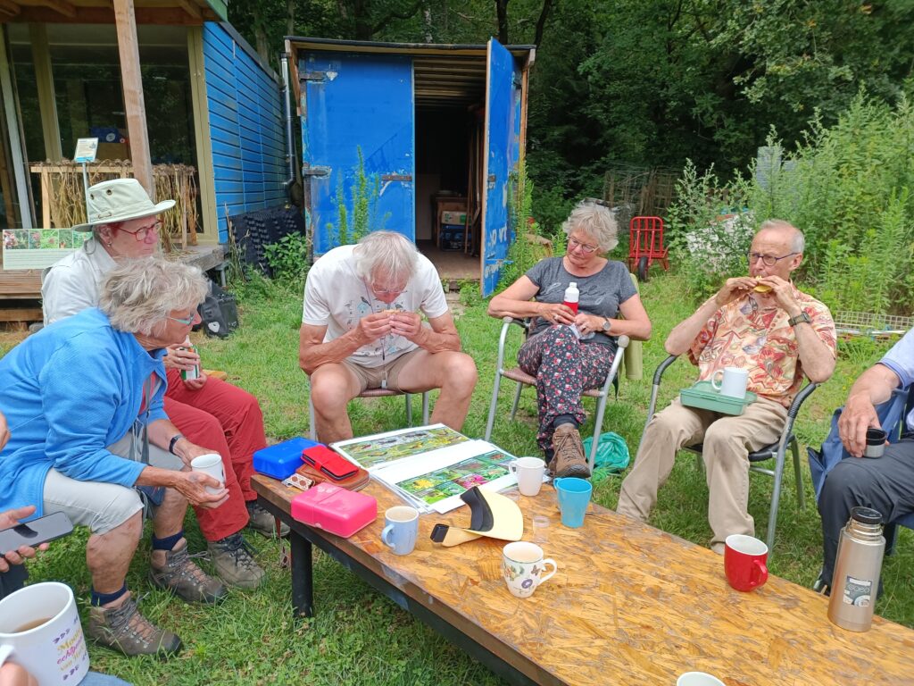 Het is warm, de lucht trilt van insectengezoem. In de schaduw van de veranda neemt Geert van Poelgeest even pauze van een intensieve dag. Ze zijn hier niet voor het eerst. Met hun werkgroep van de KNNV – de Koninklijke Nederlandse Natuurvereniging – komen ze al voor het vierde keer naar de Veldhof. Wat begon als een experiment, is uitgegroeid tot een jaarlijkse traditie.